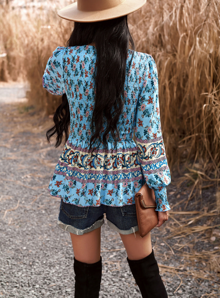 (Real Image)2023 Styles Women Sexy&Fashion Autumn/Winter TikTok&Instagram Styles Bohemian Floral ShirtsSKU: #XF45026-4