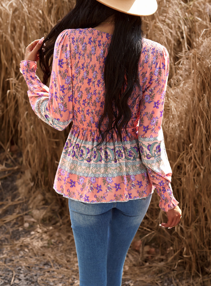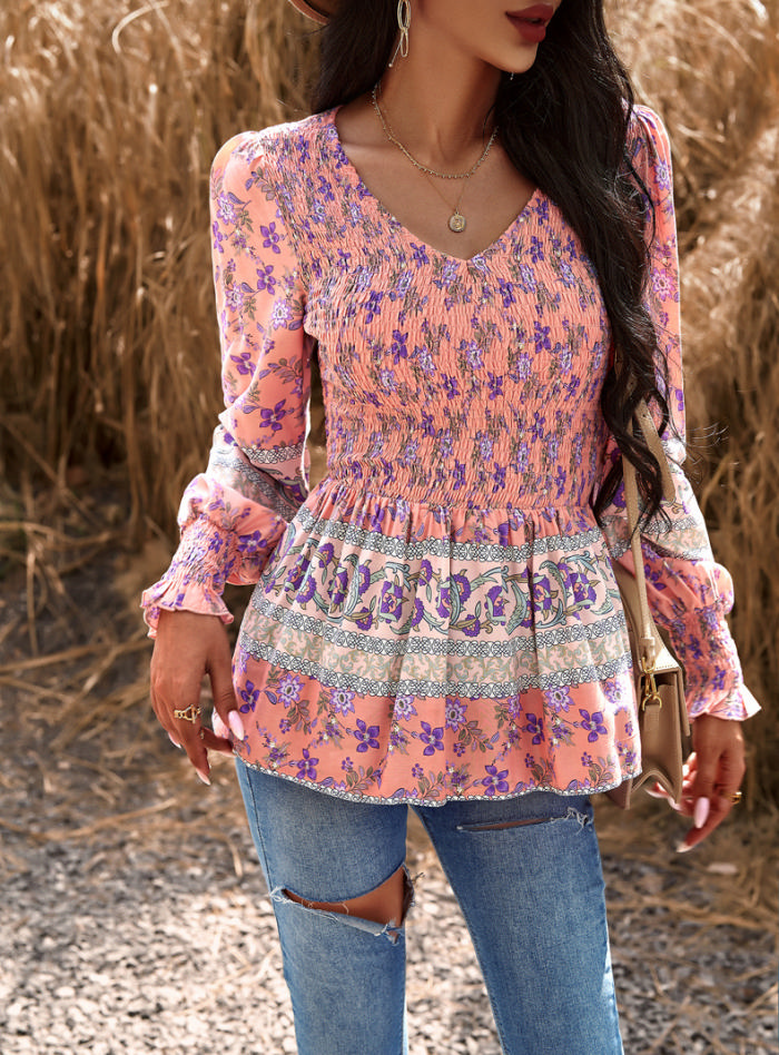(Real Image)2023 Styles Women Sexy&Fashion Autumn/Winter TikTok&Instagram Styles Bohemian Floral ShirtsSKU: #XF45026-2