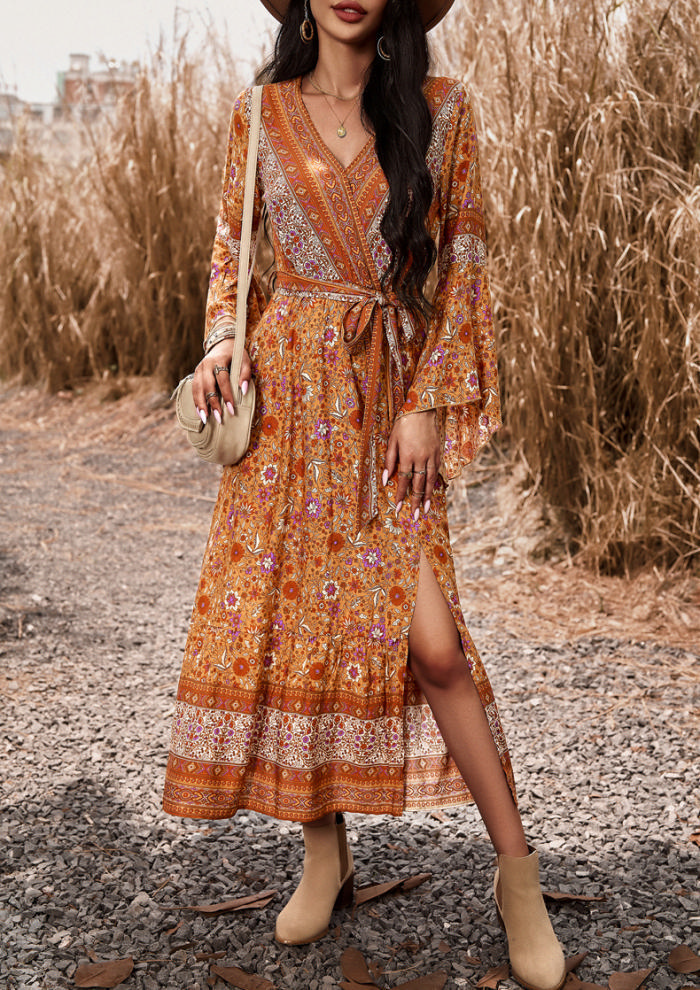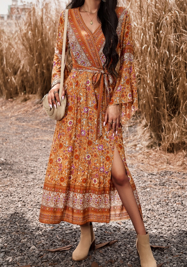 (Real Image)2023 Styles Women Sexy&Fashion Autumn/Winter TikTok&Instagram Styles Bohemian FloralMaxi DressSKU: #XF45043-1