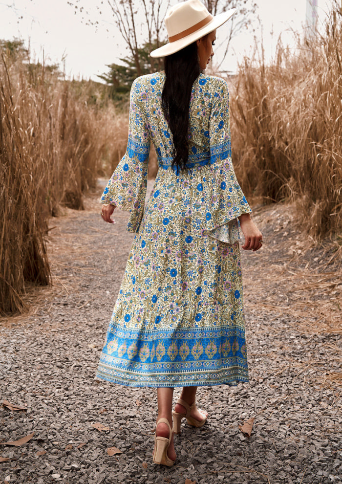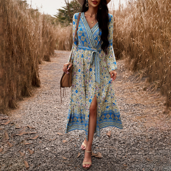 (Real Image)2023 Styles Women Sexy&Fashion Autumn/Winter TikTok&Instagram Styles Bohemian FloralMaxi DressSKU: #XF45043-4
