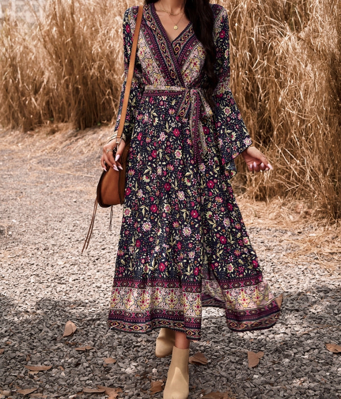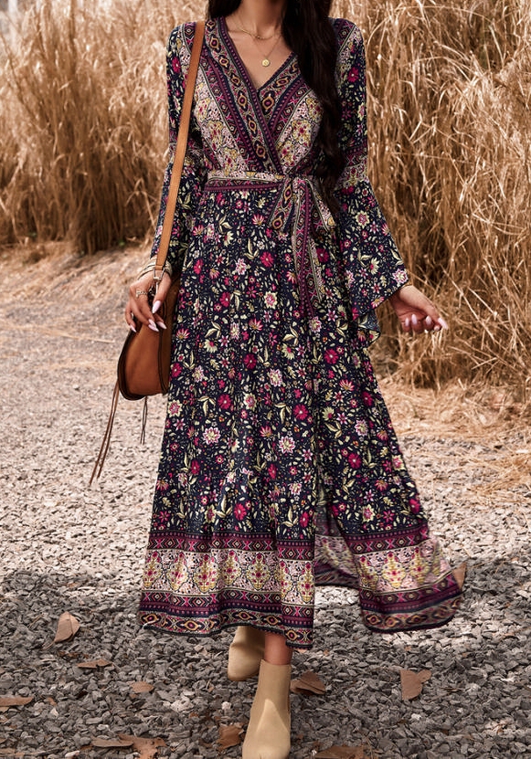 (Real Image)2023 Styles Women Sexy&Fashion Autumn/Winter TikTok&Instagram Styles Bohemian FloralMaxi DressSKU: #XF45043-3