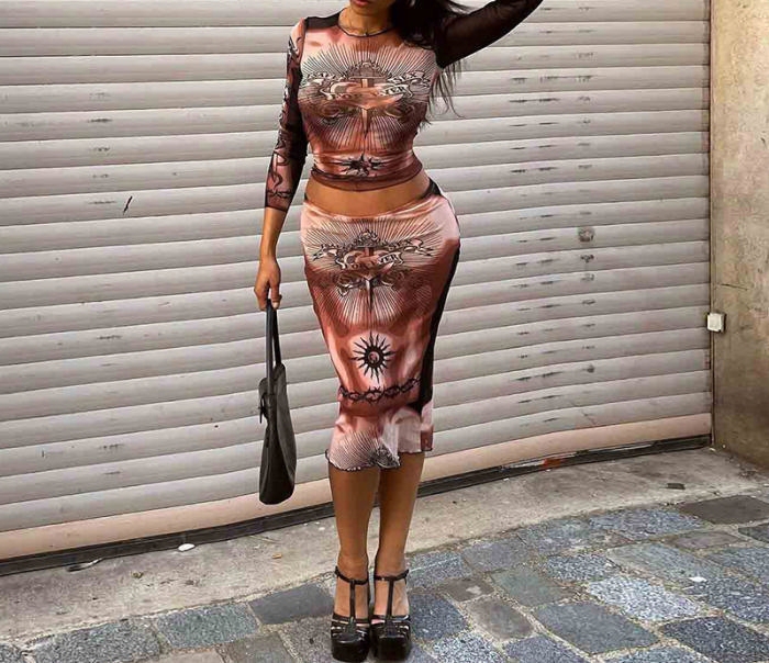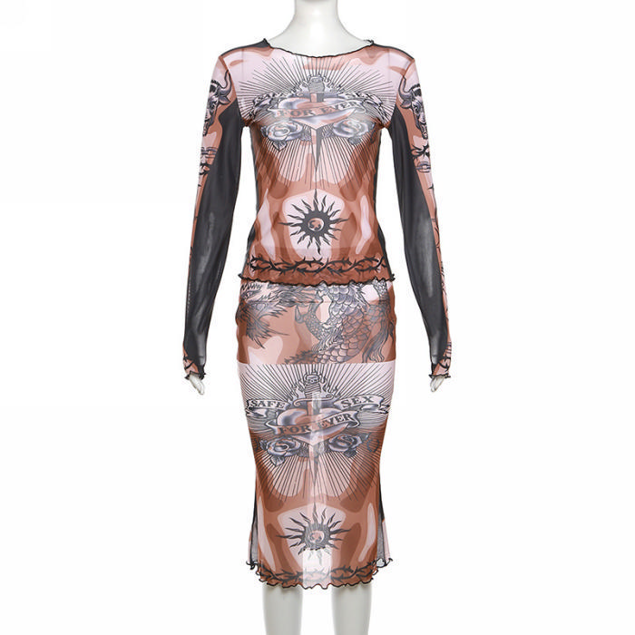 (Real Image)2023 Styles Women Sexy&Fashion Autumn/Winter TikTok&Instagram Styles Brown Print Two Piece DressSKU: #CF77673-1