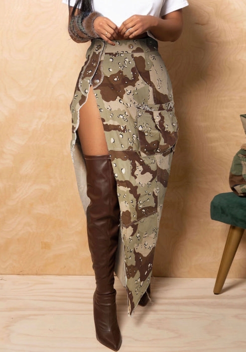 (Real Image)2023 Styles Women Sexy&Fashion Autumn/Winter TikTok&Instagram Styles Camouflage High Split SkirtsSKU: #XF23046-2