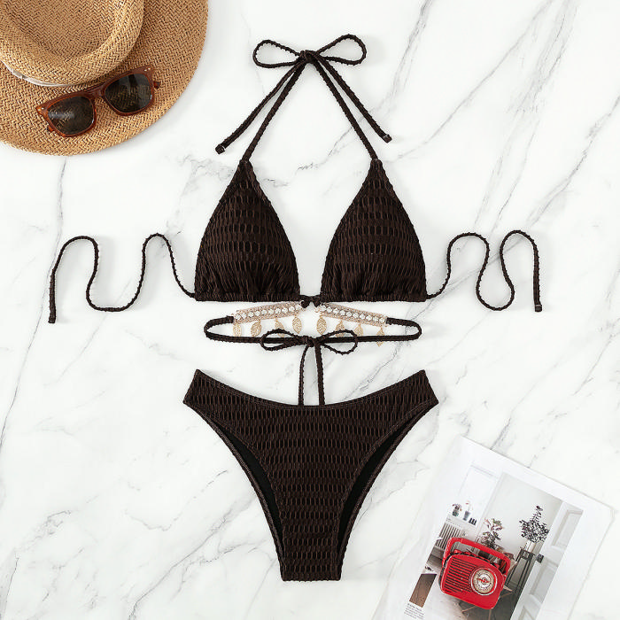 (Real Image)2023 Styles Women Sexy&Fashion Autumn/Winter TikTok&Instagram Styles Coffee Sequins Bikini SetSKU: #CF61030-2