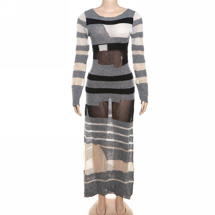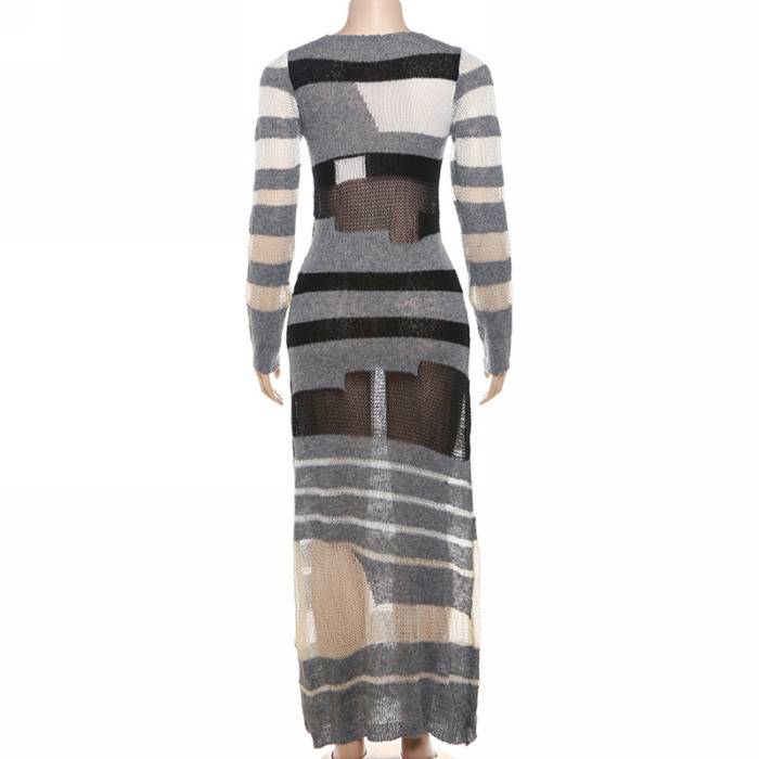 (Real Image)2023 Styles Women Sexy&Fashion Autumn/Winter TikTok&Instagram Styles Contrast Color Long Sleeve Maxi DressSKU: #CF77717-1
