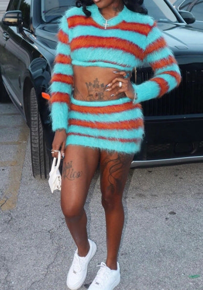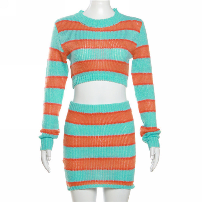 (Real Image)2023 Styles Women Sexy&Fashion Autumn/Winter TikTok&Instagram Styles Contrast Color Sweater Two Piece DressSKU: #CF77659-1