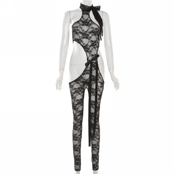 (Real Image)2023 Styles Women Sexy&Fashion Autumn/Winter TikTok&Instagram Styles Cut Out Lace JumpsuitSKU: #CF77736-1