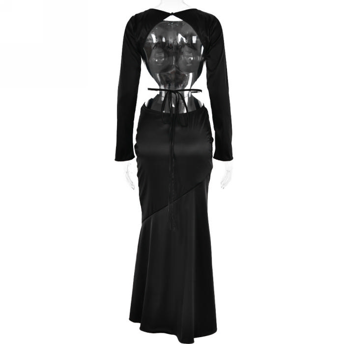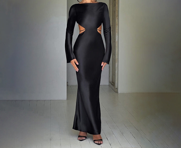 (Real Image)2023 Styles Women Sexy&Fashion Autumn/Winter TikTok&Instagram Styles Cut Out Long Sleeve Maxi DressSKU: #XF62630-1