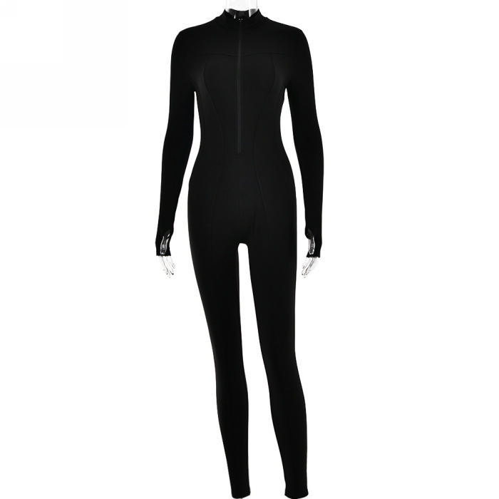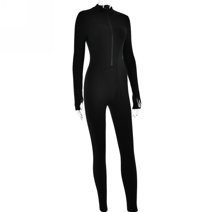 (Real Image)2023 Styles Women Sexy&Fashion Autumn/Winter TikTok&Instagram Styles Front Zipper Long Sleeve JumpsuitSKU: #XF62654-1