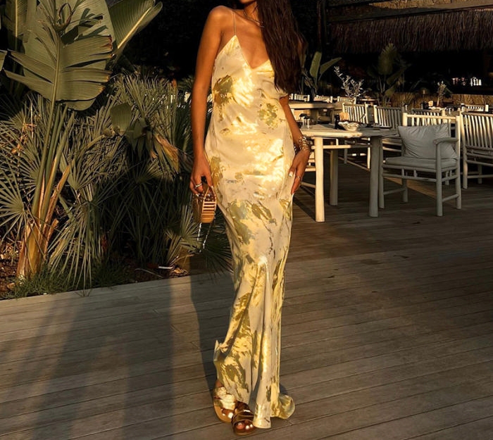 (Real Image)2023 Styles Women Sexy&Fashion Autumn/Winter TikTok&Instagram Styles Gold Backless Strap Maxi DressSKU: #CF88134-1