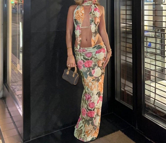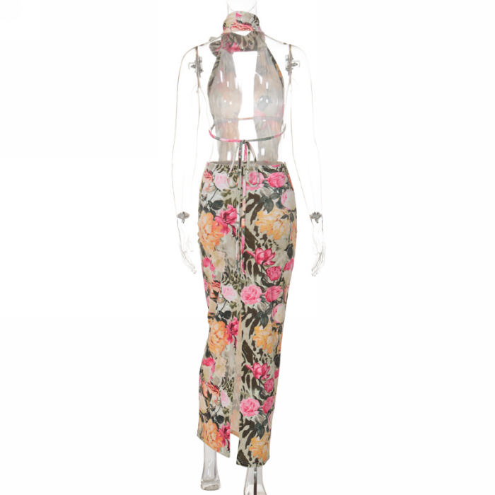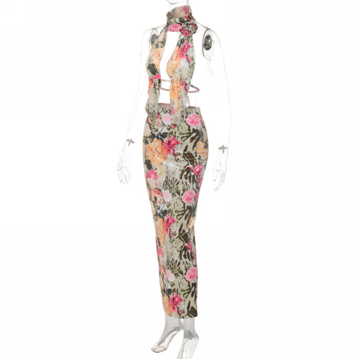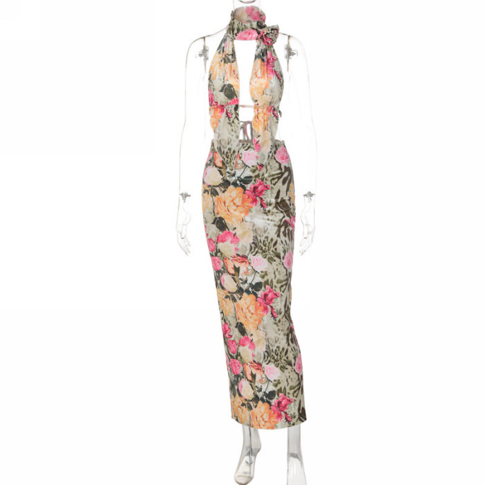 (Real Image)2023 Styles Women Sexy&Fashion Autumn/Winter TikTok&Instagram Styles Halter Flower Backless Maxi DressSKU: #CF88172-1