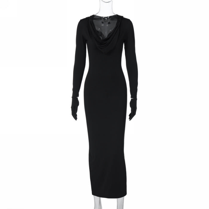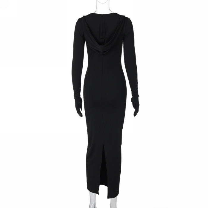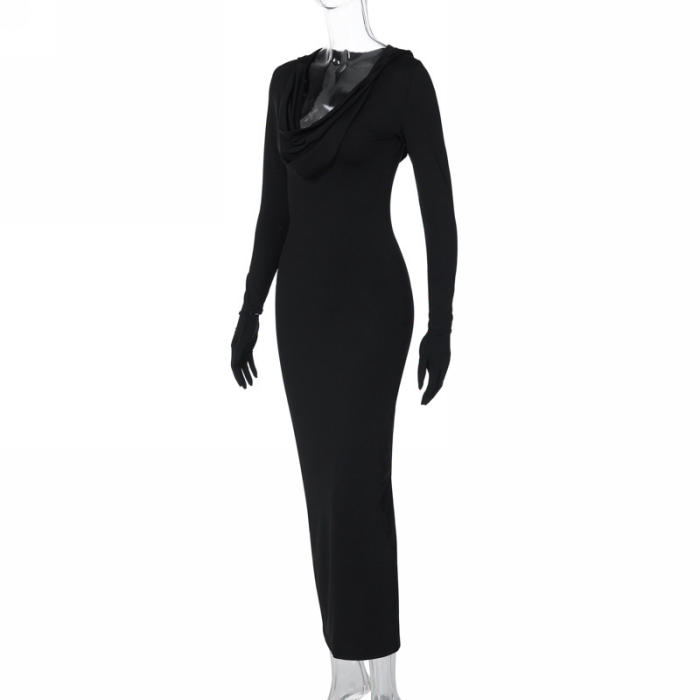 (Real Image)2023 Styles Women Sexy&Fashion Autumn/Winter TikTok&Instagram Styles Hoodie Black Maxi DressSKU: #CF88174-1