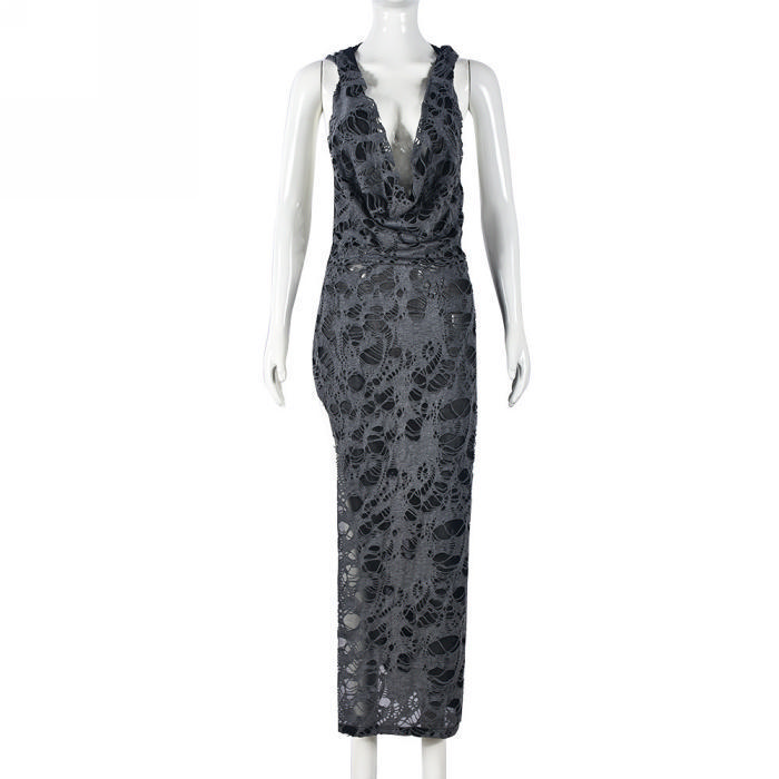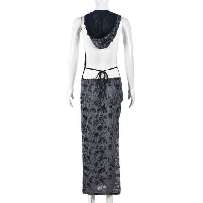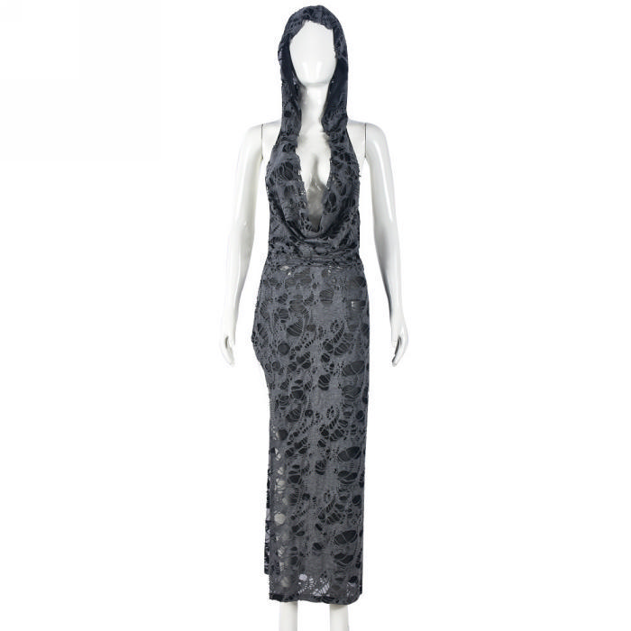 (Real Image)2023 Styles Women Sexy&Fashion Autumn/Winter TikTok&Instagram Styles Hoodie Gray High Split Maxi DressSKU: #CF59787-1