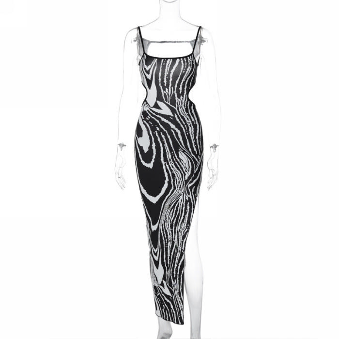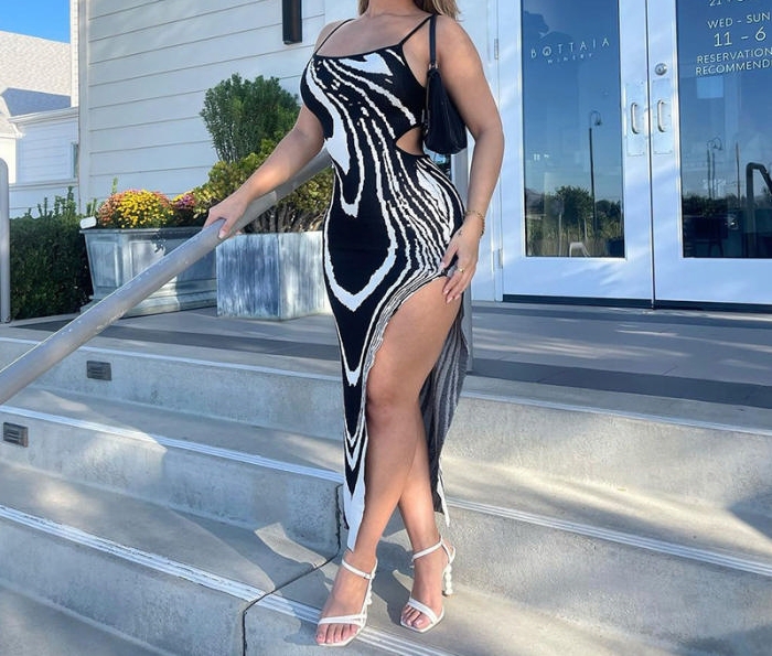 (Real Image)2023 Styles Women Sexy&Fashion Autumn/Winter TikTok&Instagram Styles Irregular Cut Out Strap High Split Maxi DressSKU: #CF88165-1
