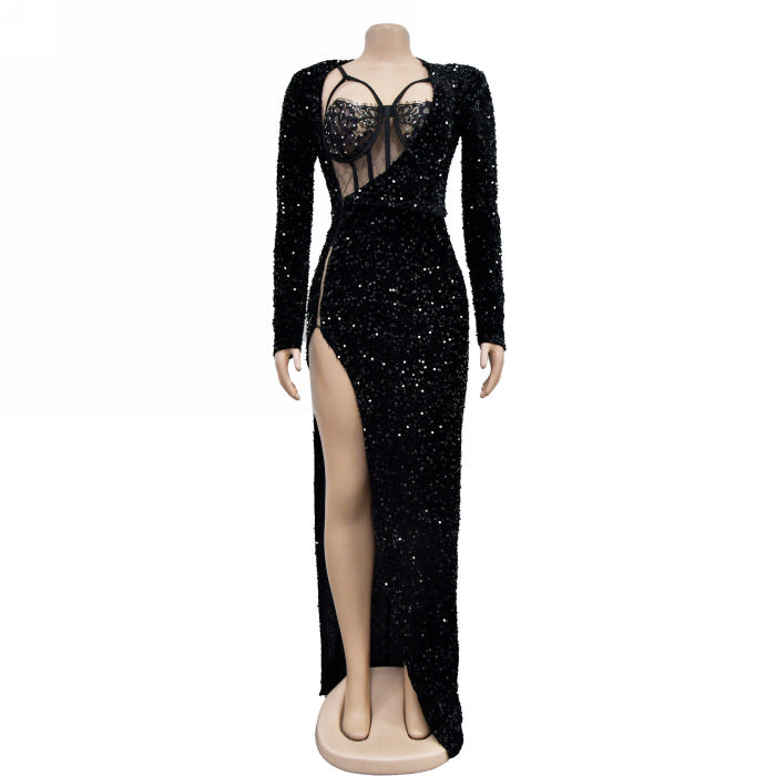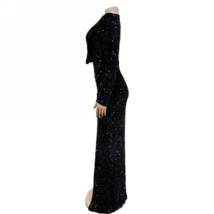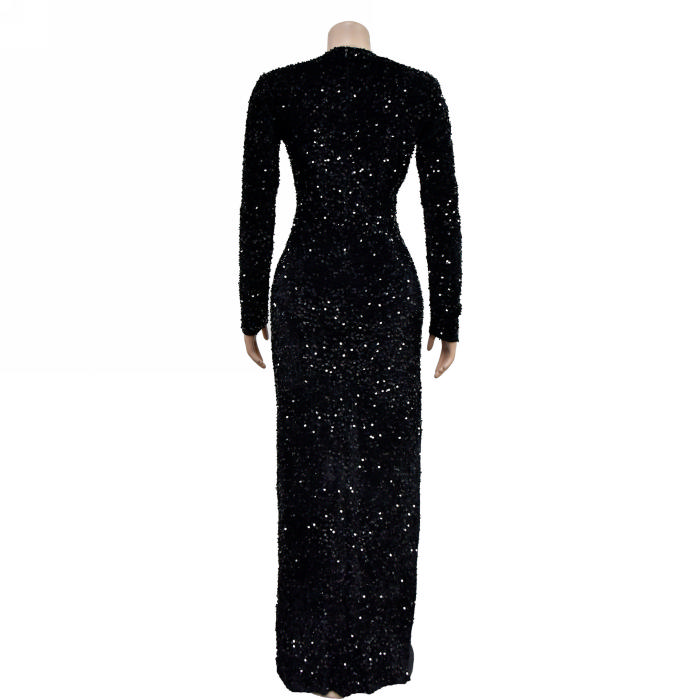 (Real Image)2023 Styles Women Sexy&Fashion Autumn/Winter TikTok&Instagram Styles Irregular Sequins Maxi DressSKU: #XF73028-1