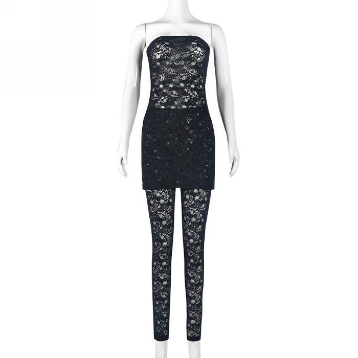 (Real Image)2023 Styles Women Sexy&Fashion Autumn/Winter TikTok&Instagram Styles Lace Black Two Piece SuitSKU: #CF59802-1