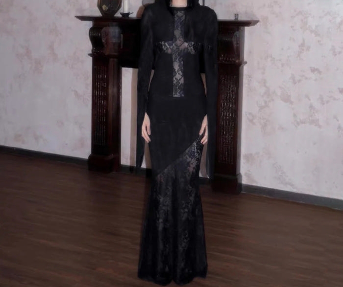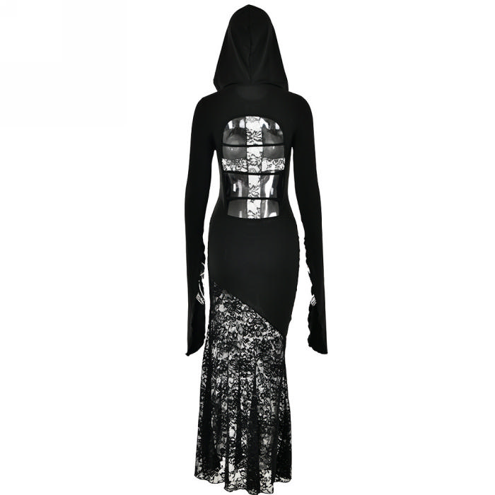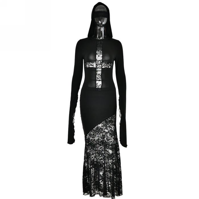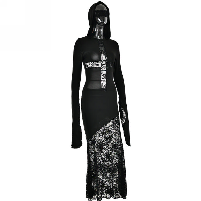 (Real Image)2023 Styles Women Sexy&Fashion Autumn/Winter TikTok&Instagram Styles Lace Hoodie Maxi DressSKU: #XF62645-1