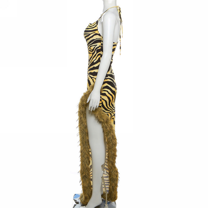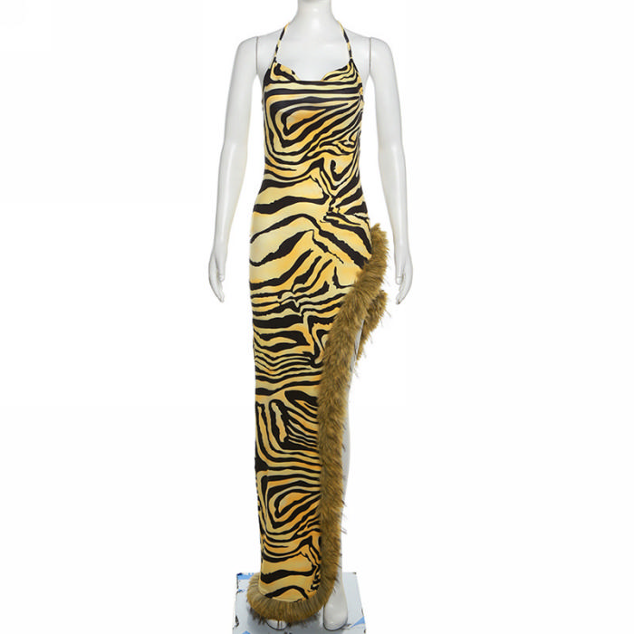 (Real Image)2023 Styles Women Sexy&Fashion Autumn/Winter TikTok&Instagram Styles Leopard Halter Irregular Maxi DressSKU: #CF83255-1