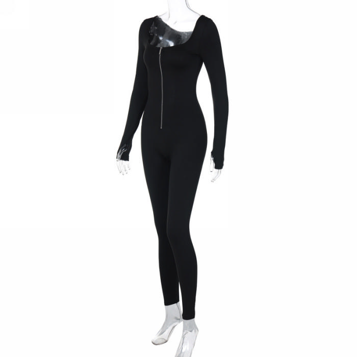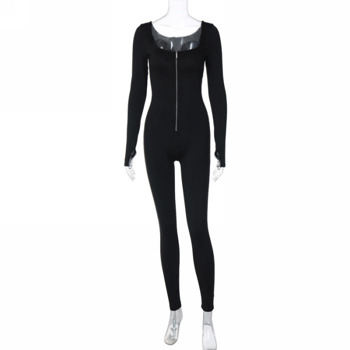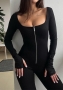 (Real Image)2023 Styles Women Sexy&Fashion Autumn/Winter TikTok&Instagram Styles Long Sleeve Front Zipper JumpsuitSKU: #CF88182-1