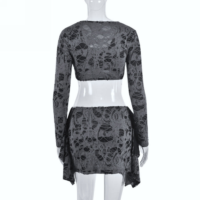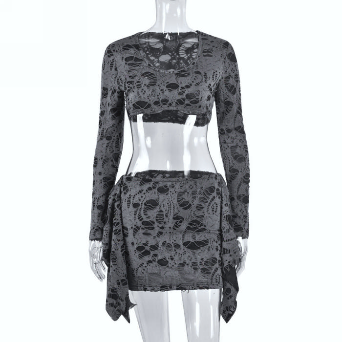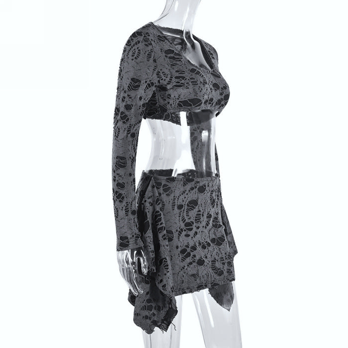 (Real Image)2023 Styles Women Sexy&Fashion Autumn/Winter TikTok&Instagram Styles Long Sleeve Gray Two Piece DressSKU: #CF59741-1