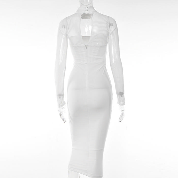 (Real Image)2023 Styles Women Sexy&Fashion Autumn/Winter TikTok&Instagram Styles Long Sleeve Mesh Maxi DressSKU: #XF62612-1
