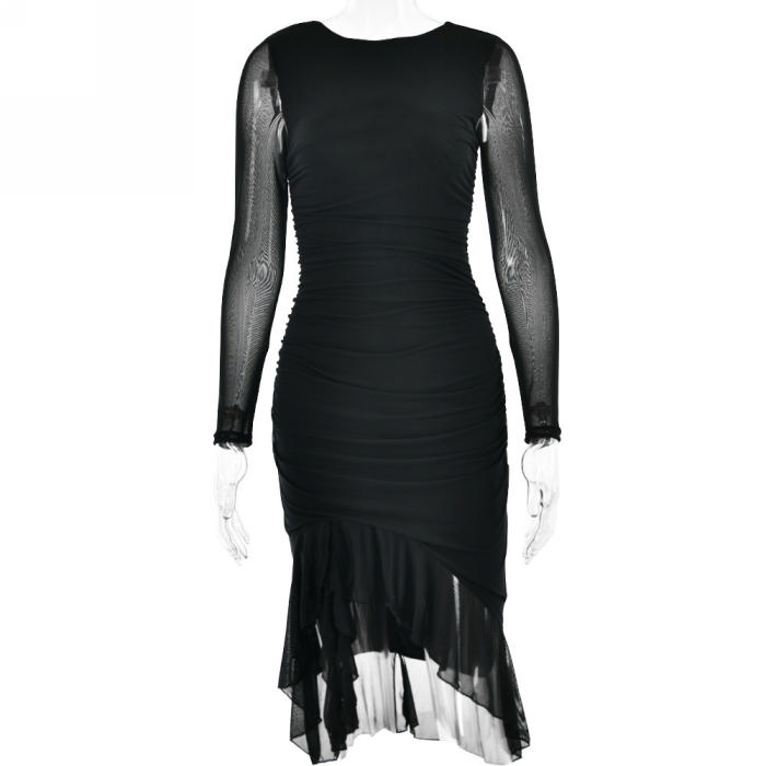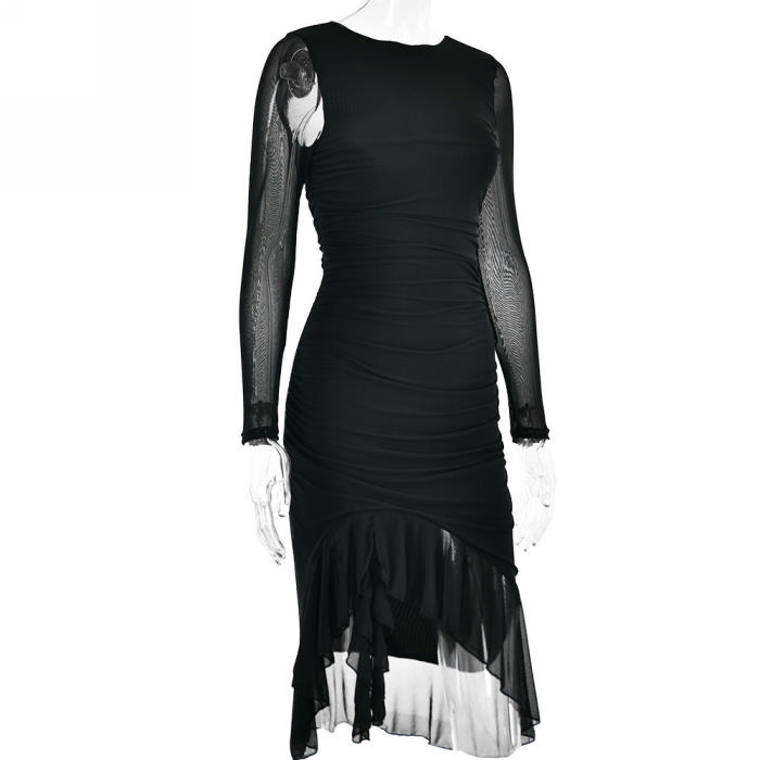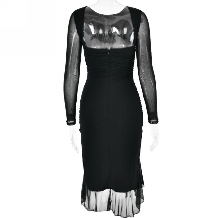 (Real Image)2023 Styles Women Sexy&Fashion Autumn/Winter TikTok&Instagram Styles Long Sleeve Mesh Mini DressSKU: #XF62650-1