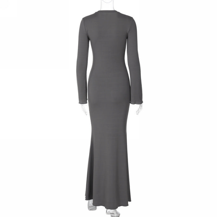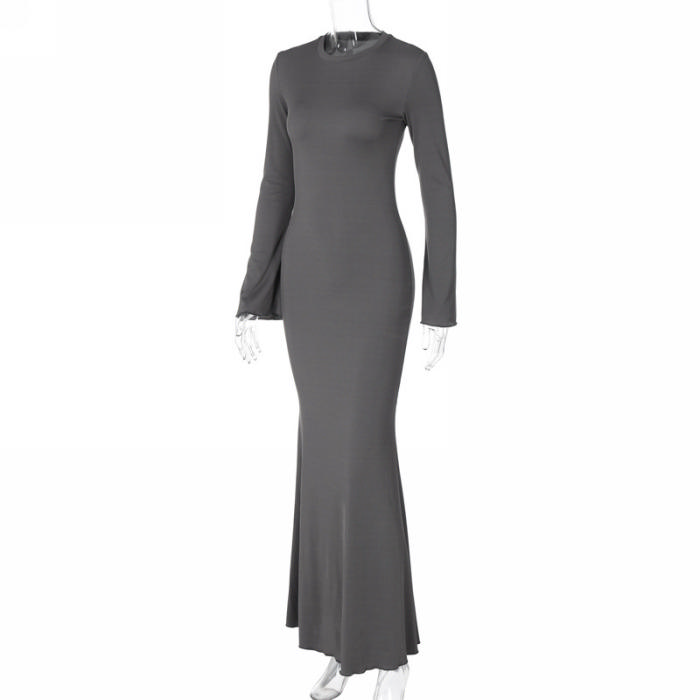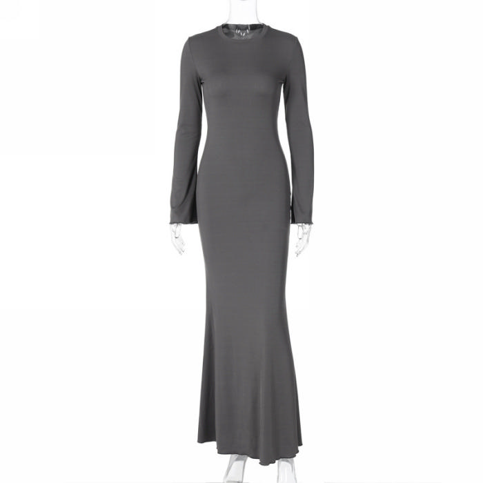(Real Image)2023 Styles Women Sexy&Fashion Autumn/Winter TikTok&Instagram Styles Long Sleeve Round Neck Maxi DressSKU: #CF88141-1