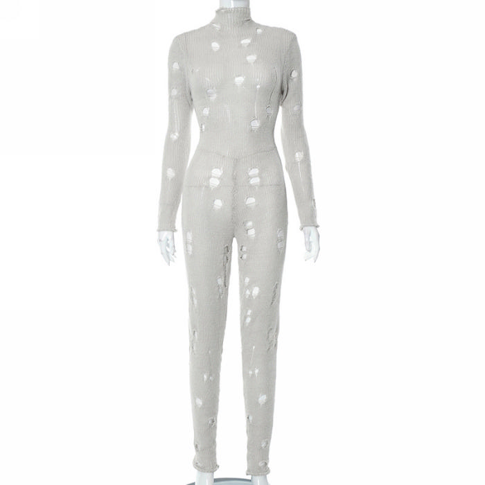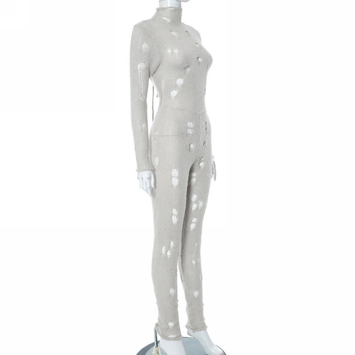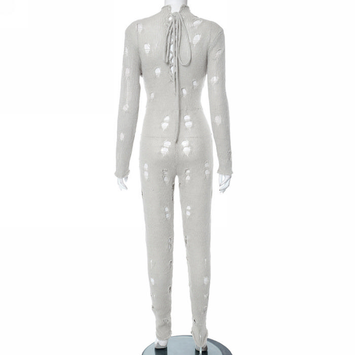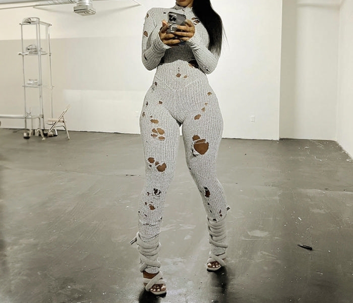 (Real Image)2023 Styles Women Sexy&Fashion Autumn/Winter TikTok&Instagram Styles Long Sleeve Sweater Ripped JumpsuitSKU: #CF47773-1