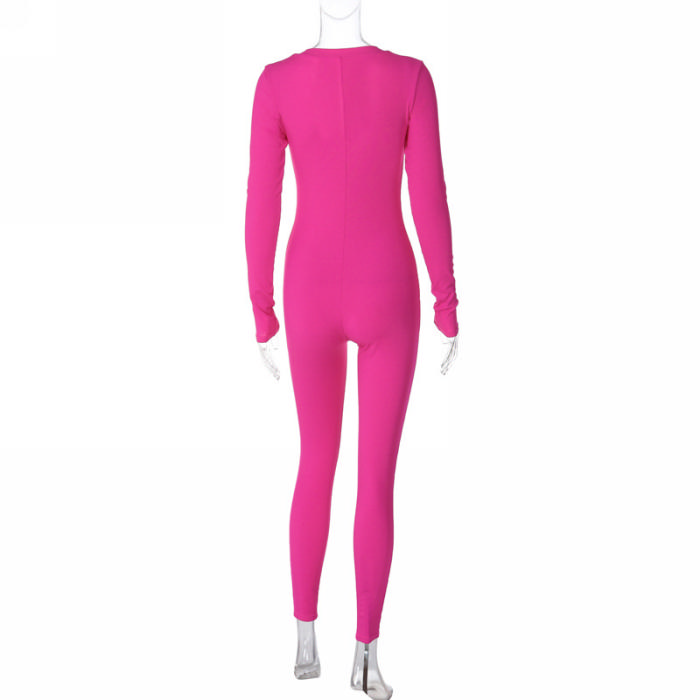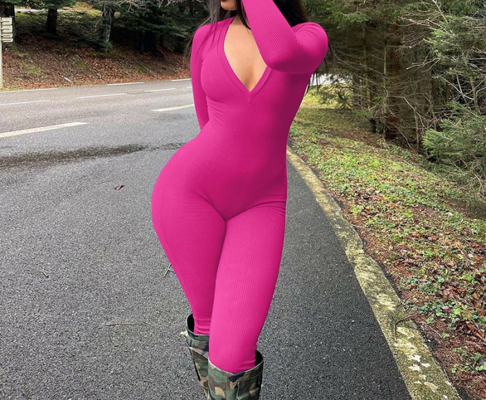 (Real Image)2023 Styles Women Sexy&Fashion Autumn/Winter TikTok&Instagram Styles Long Sleeve V Neck JumpsuitSKU: #CF88190-1