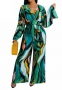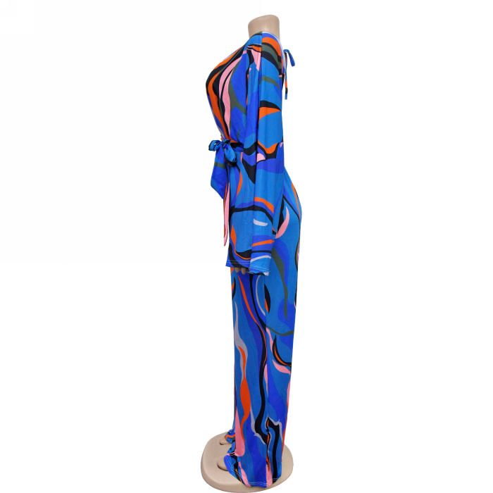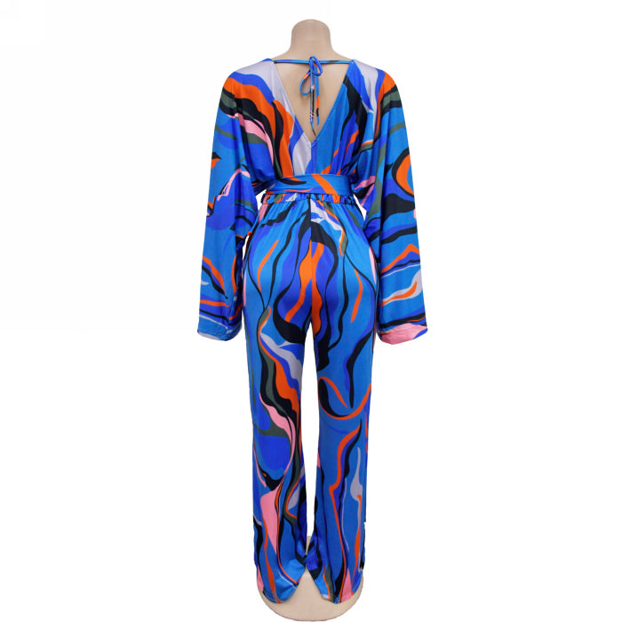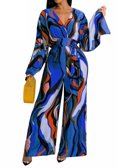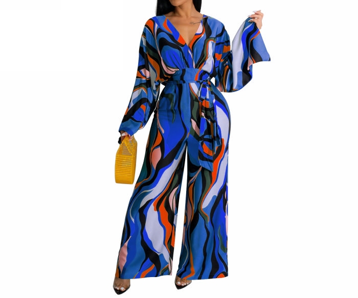 (Real Image)2023 Styles Women Sexy&Fashion Autumn/Winter TikTok&Instagram Styles Loose Print Jumpsuit With Waist TieSKU: #XF73011-1