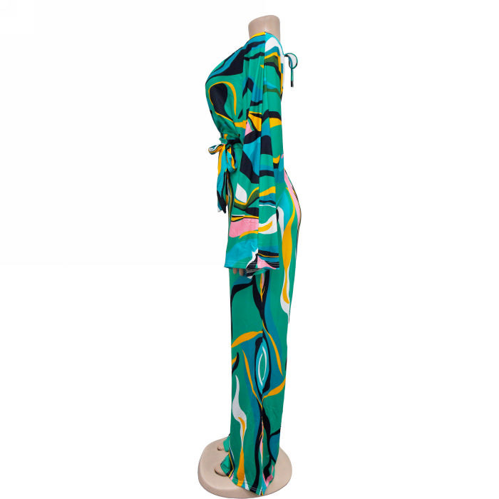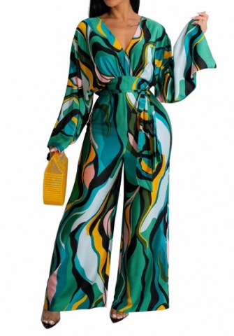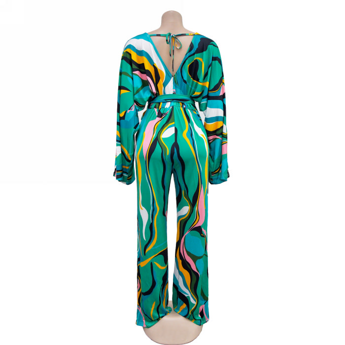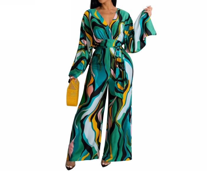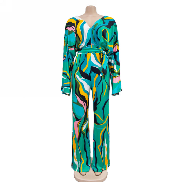 (Real Image)2023 Styles Women Sexy&Fashion Autumn/Winter TikTok&Instagram Styles Loose Print Jumpsuit With Waist TieSKU: #XF73011-2