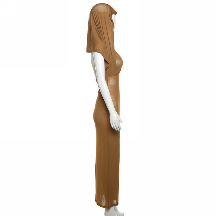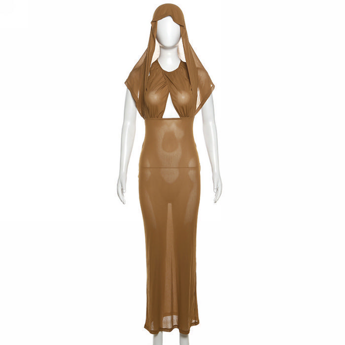 (Real Image)2023 Styles Women Sexy&Fashion Autumn/Winter TikTok&Instagram Styles Mesh Coffee Maxi DressSKU: #CF83281-1