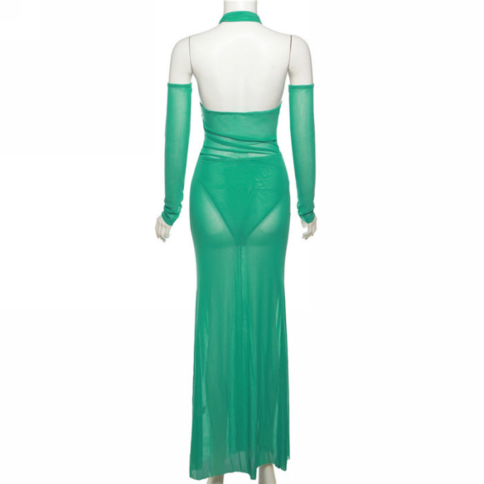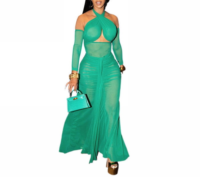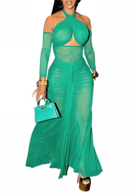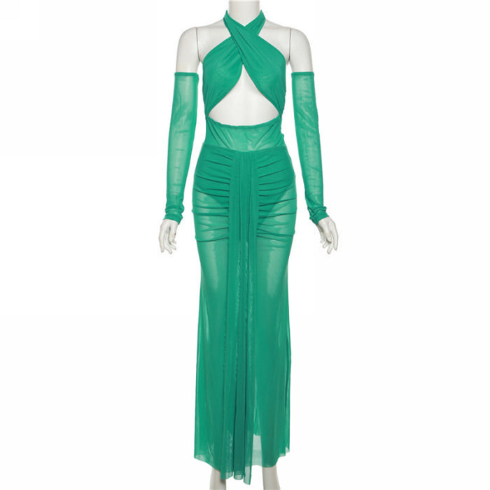 (Real Image)2023 Styles Women Sexy&Fashion Autumn/Winter TikTok&Instagram Styles Mesh Green Maxi DressSKU: #CF83272-1