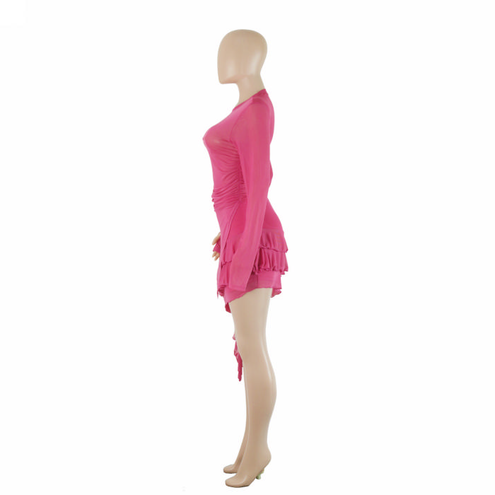 (Real Image)2023 Styles Women Sexy&Fashion Autumn/Winter TikTok&Instagram Styles Mesh Long SLeeve Club DressSKU: #OEM5998-1