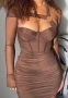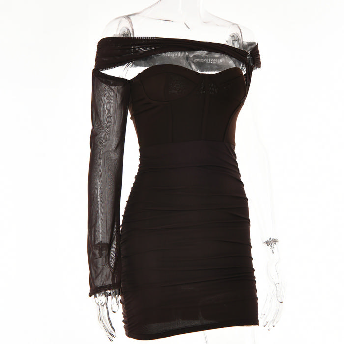 (Real Image)2023 Styles Women Sexy&Fashion Autumn/Winter TikTok&Instagram Styles Mesh Long Sleeve Tube Mini DressSKU: #XF62618-2