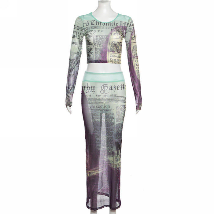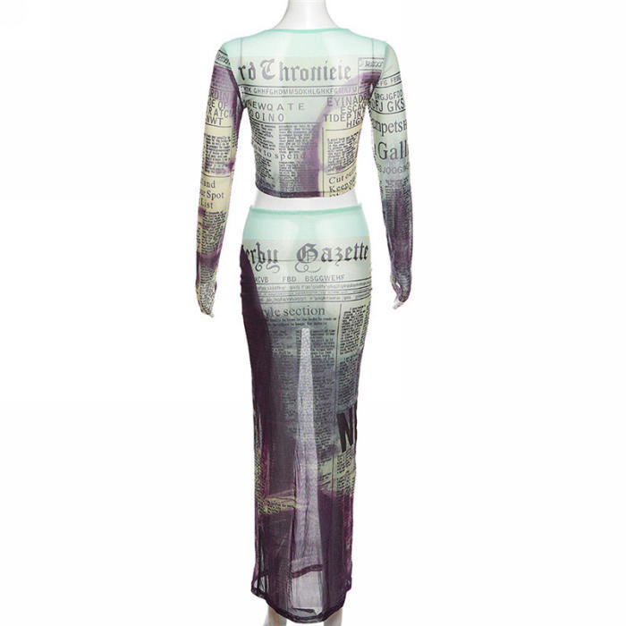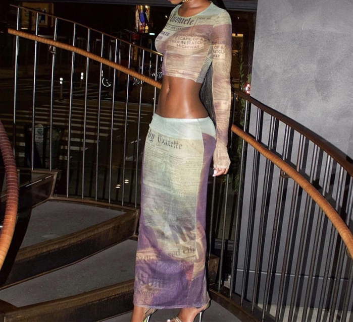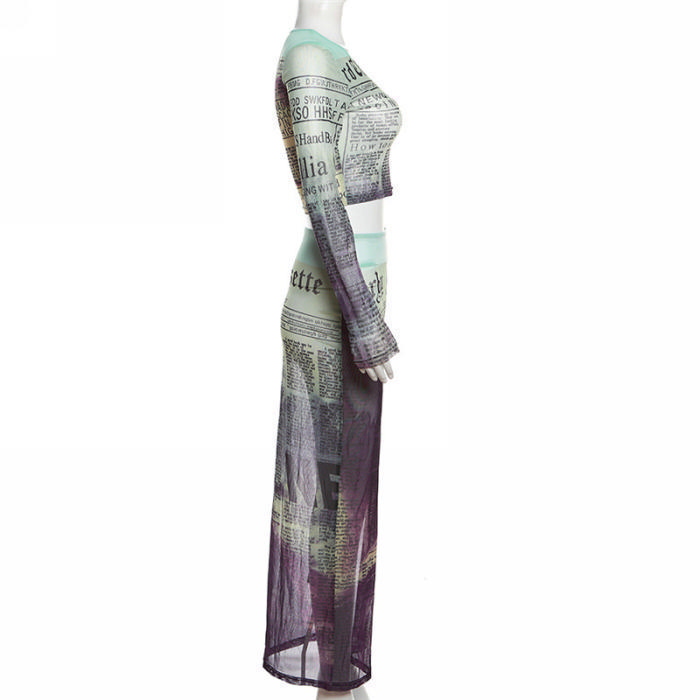 (Real Image)2023 Styles Women Sexy&Fashion Autumn/Winter TikTok&Instagram Styles Mesh Print Maxi DressSKU: #CF83275-1