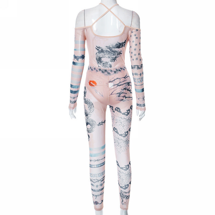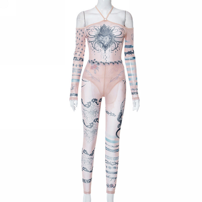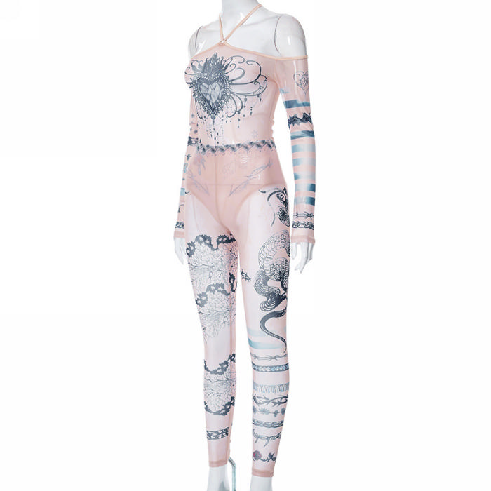(Real Image)2023 Styles Women Sexy&Fashion Autumn/Winter TikTok&Instagram Styles Mesh Print Two Piece SuitSKU: #CF47760-1