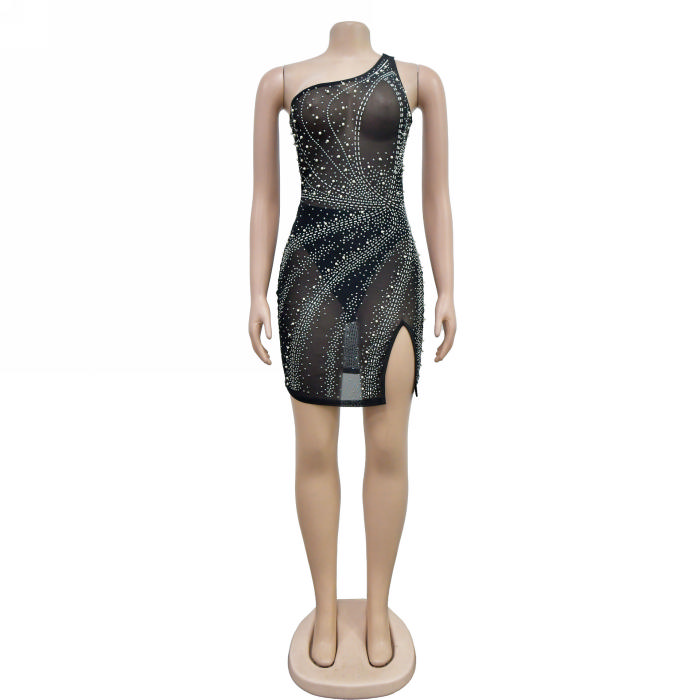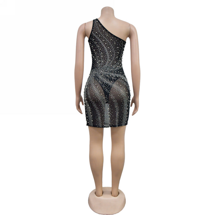 (Real Image)2023 Styles Women Sexy&Fashion Autumn/Winter TikTok&Instagram Styles Mesh Sequins Mini DressSKU: #XF73022-1