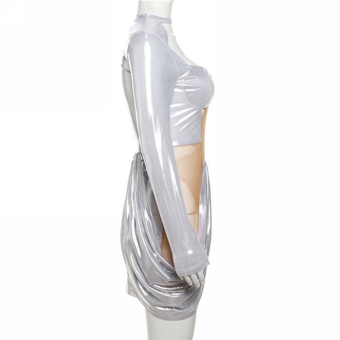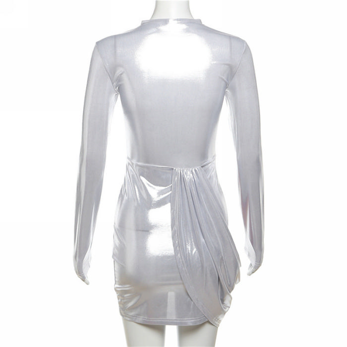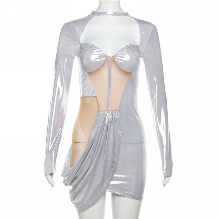(Real Image)2023 Styles Women Sexy&Fashion Autumn/Winter TikTok&Instagram Styles Mesh Sliver Long Sleeve Club DressSKU: #CF83247-1