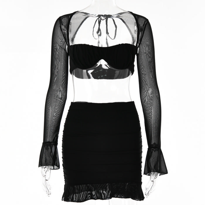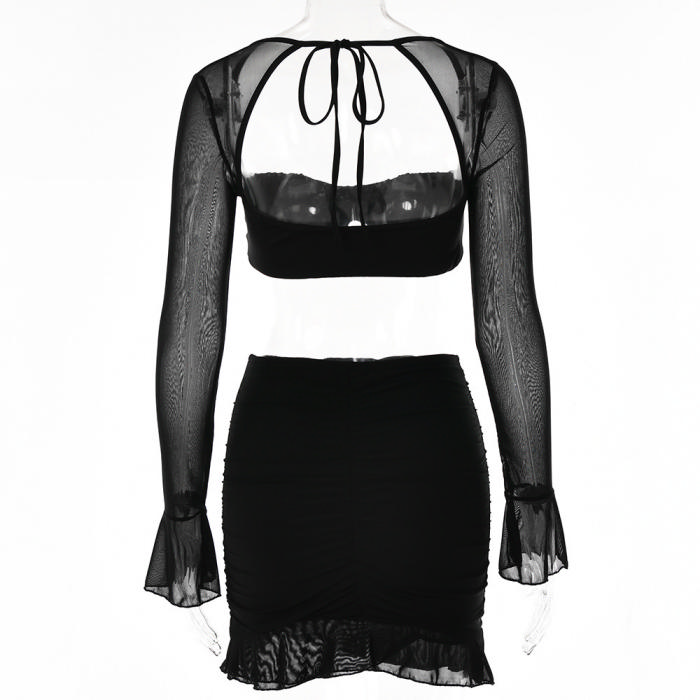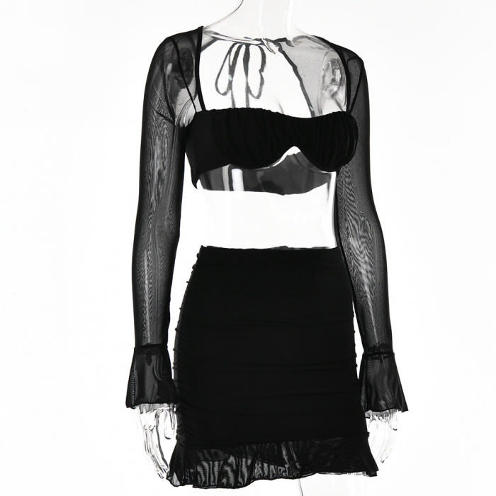 (Real Image)2023 Styles Women Sexy&Fashion Autumn/Winter TikTok&Instagram Styles Mesh Two Piece DressSKU: #XF62611-1