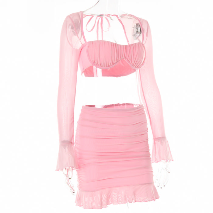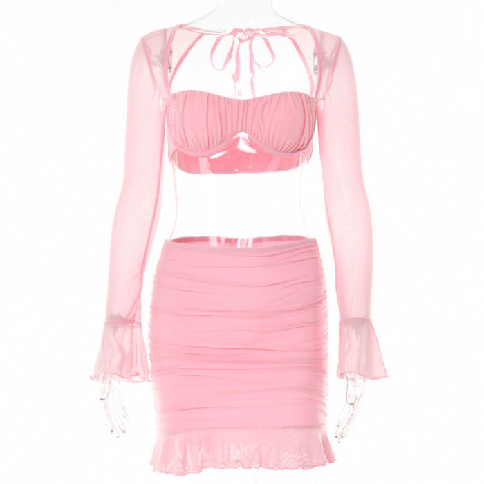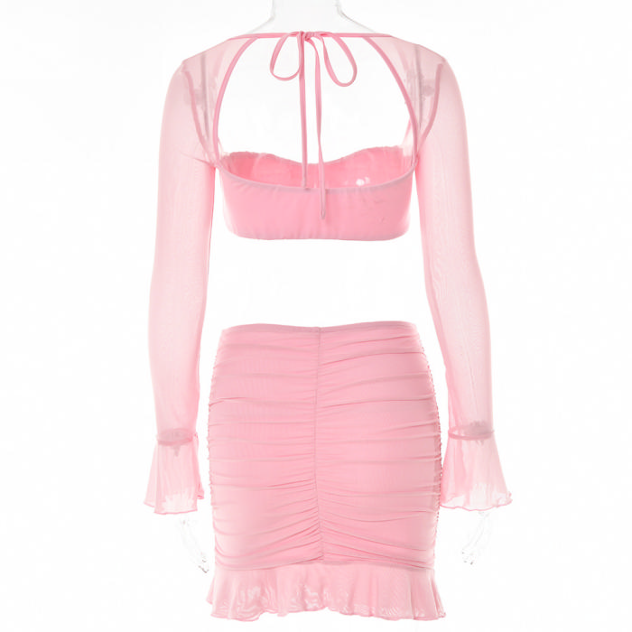 (Real Image)2023 Styles Women Sexy&Fashion Autumn/Winter TikTok&Instagram Styles Mesh Two Piece DressSKU: #XF62611-2