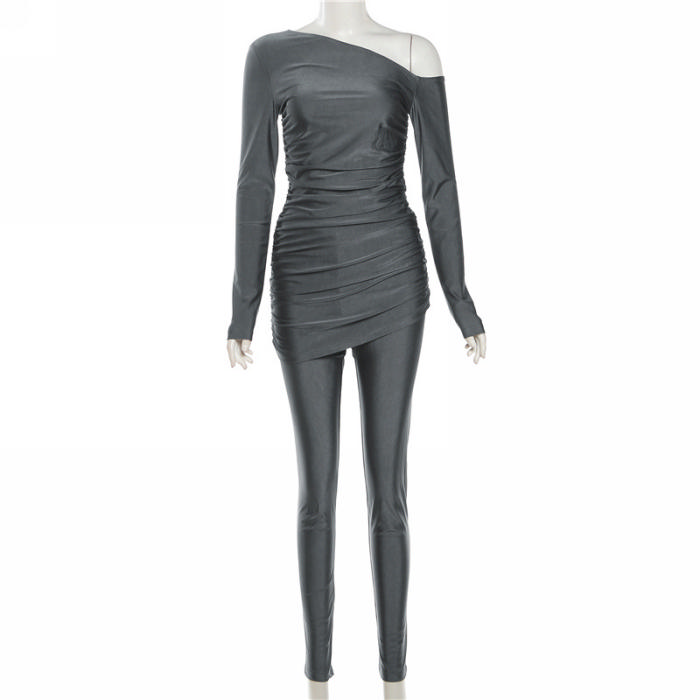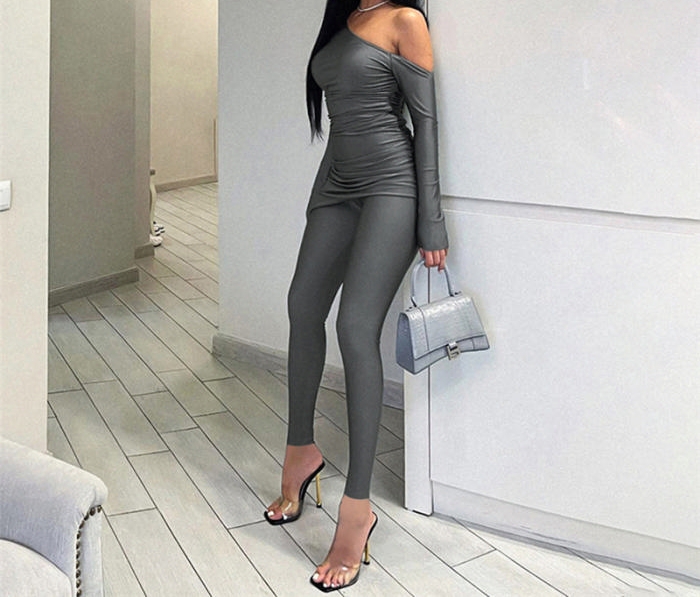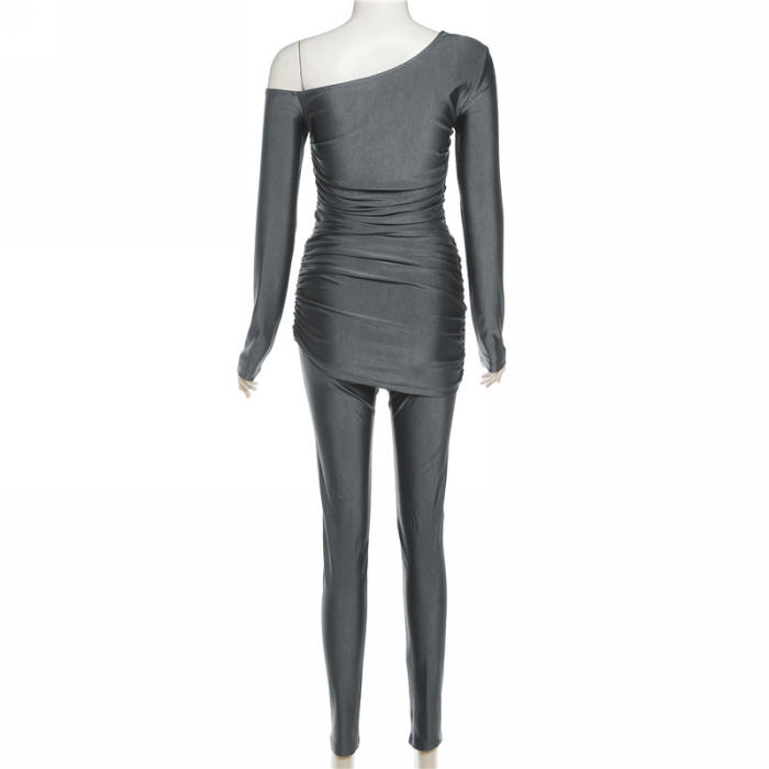 (Real Image)2023 Styles Women Sexy&Fashion Autumn/Winter TikTok&Instagram Styles Off Shoulder Long Sleeve Two Piece SuitSKU: #CF77721-1