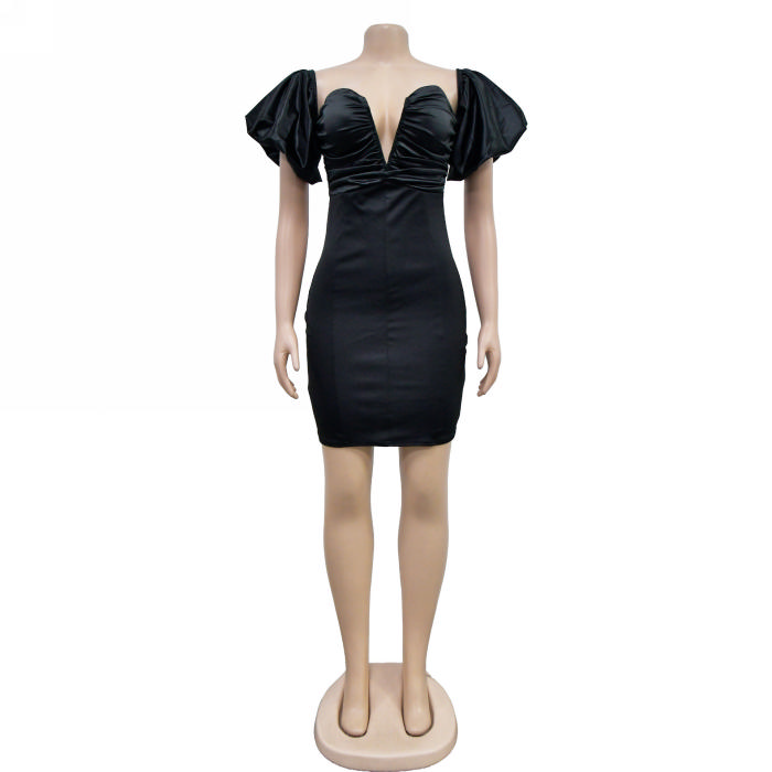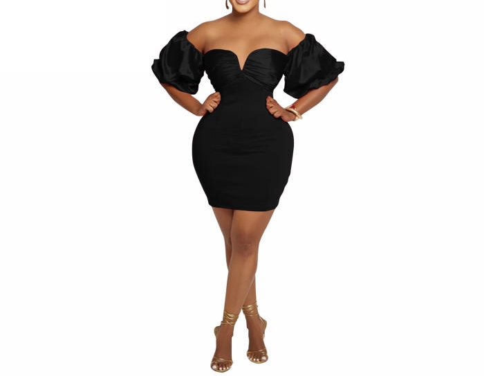 (Real Image)2023 Styles Women Sexy&Fashion Autumn/Winter TikTok&Instagram Styles Off Shoulder Short Sleeve Mini DressSKU: #XF73016-1