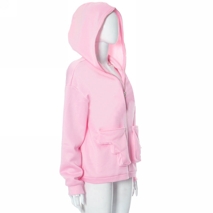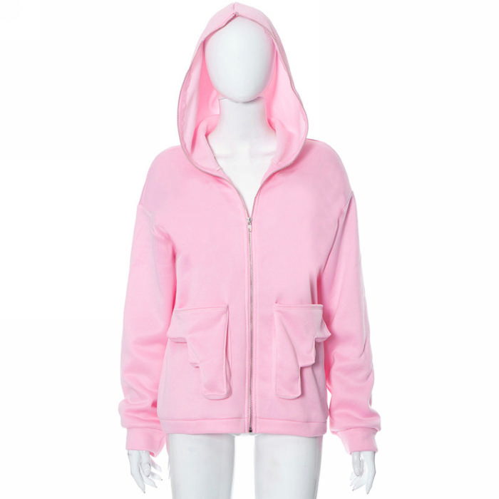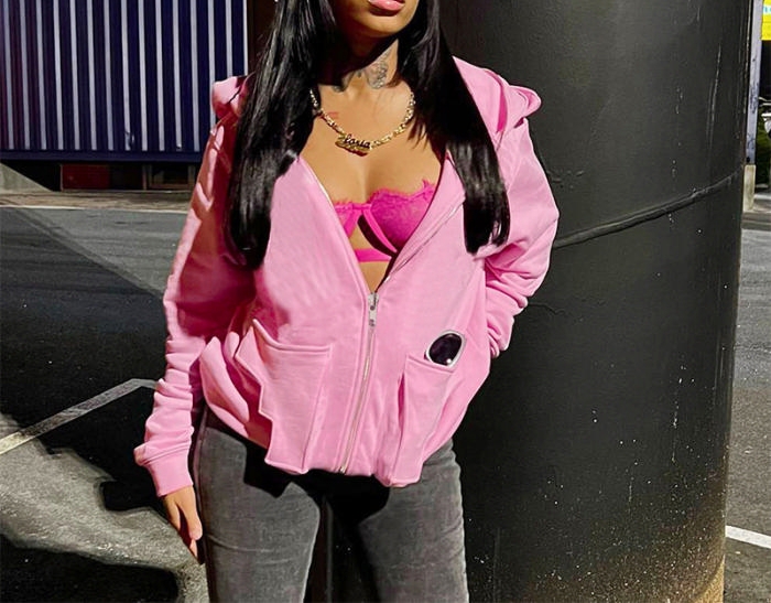 (Real Image)2023 Styles Women Sexy&Fashion Autumn/Winter TikTok&Instagram Styles Pink Front Zipper Hoodie CoatSKU: #CF47734-1
