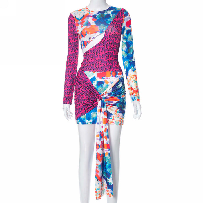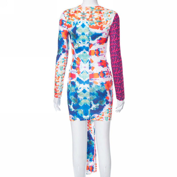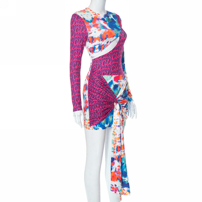 (Real Image)2023 Styles Women Sexy&Fashion Autumn/Winter TikTok&Instagram Styles Print Cut Out Club DressSKU: #CF47739-1