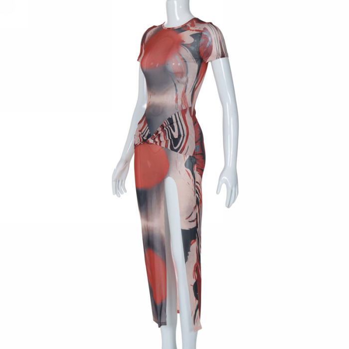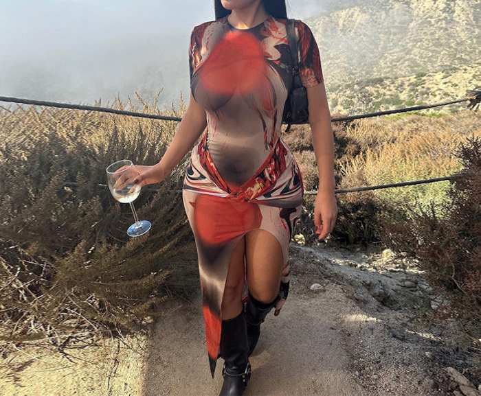 (Real Image)2023 Styles Women Sexy&Fashion Autumn/Winter TikTok&Instagram Styles Print High Split Maxi DressSKU: #CF88161-1