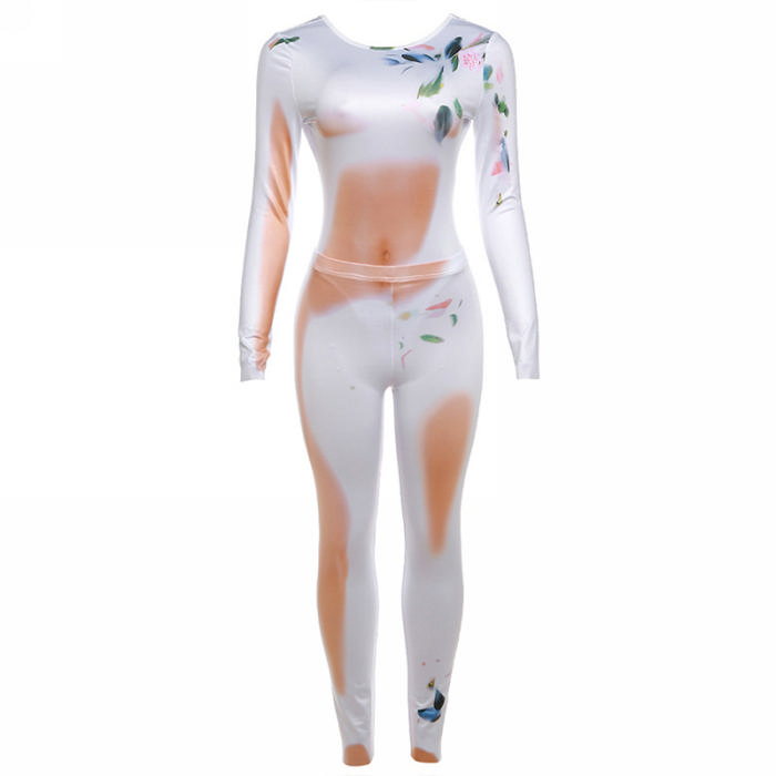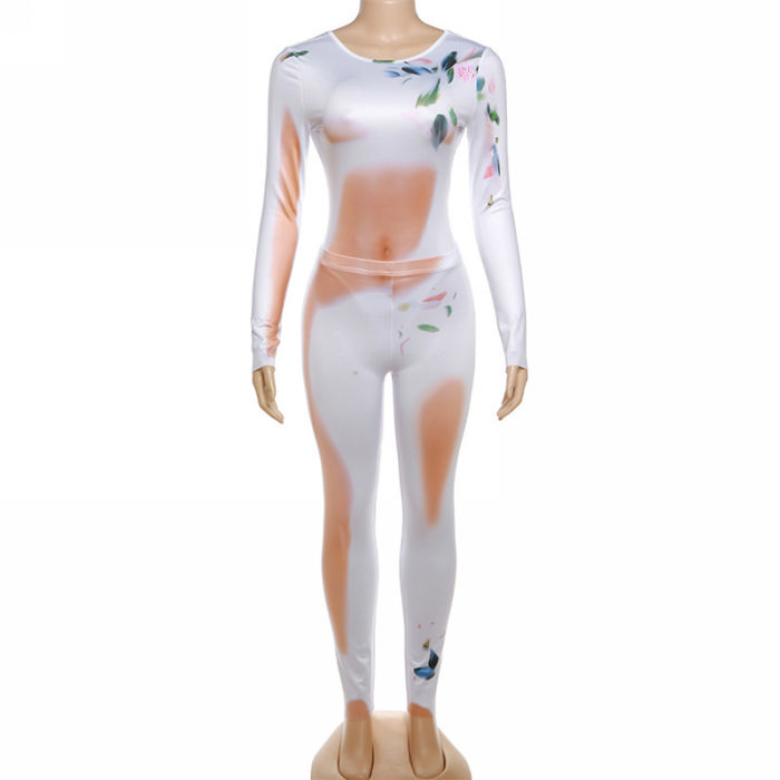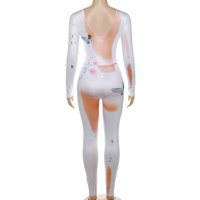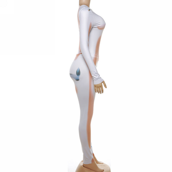 (Real Image)2023 Styles Women Sexy&Fashion Autumn/Winter TikTok&Instagram Styles Print Long Sleeve Bodysuit+Long PantsSKU: #CF77709-1