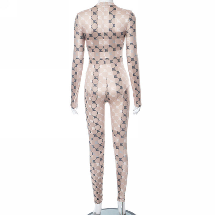 (Real Image)2023 Styles Women Sexy&Fashion Autumn/Winter TikTok&Instagram Styles Print Long Sleeve JumpsuitSKU: #CF47736-1