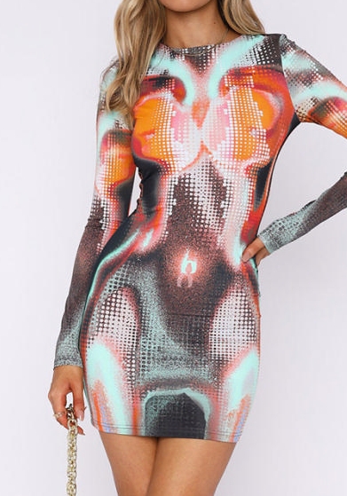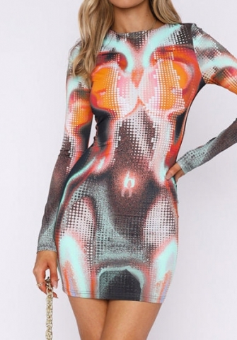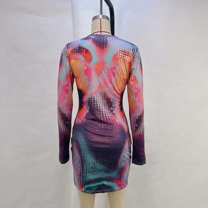 (Real Image)2023 Styles Women Sexy&Fashion Autumn/Winter TikTok&Instagram Styles Print Long Sleeve Mini DressSKU: #OU2846-1