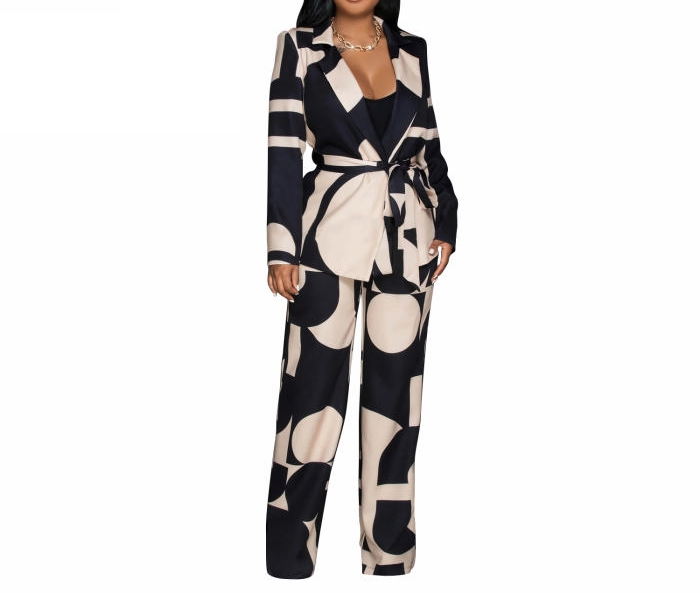 (Real Image)2023 Styles Women Sexy&Fashion Autumn/Winter TikTok&Instagram Styles Print Loose Two Piece Suit With Waist TieSKU: #XF73024-2